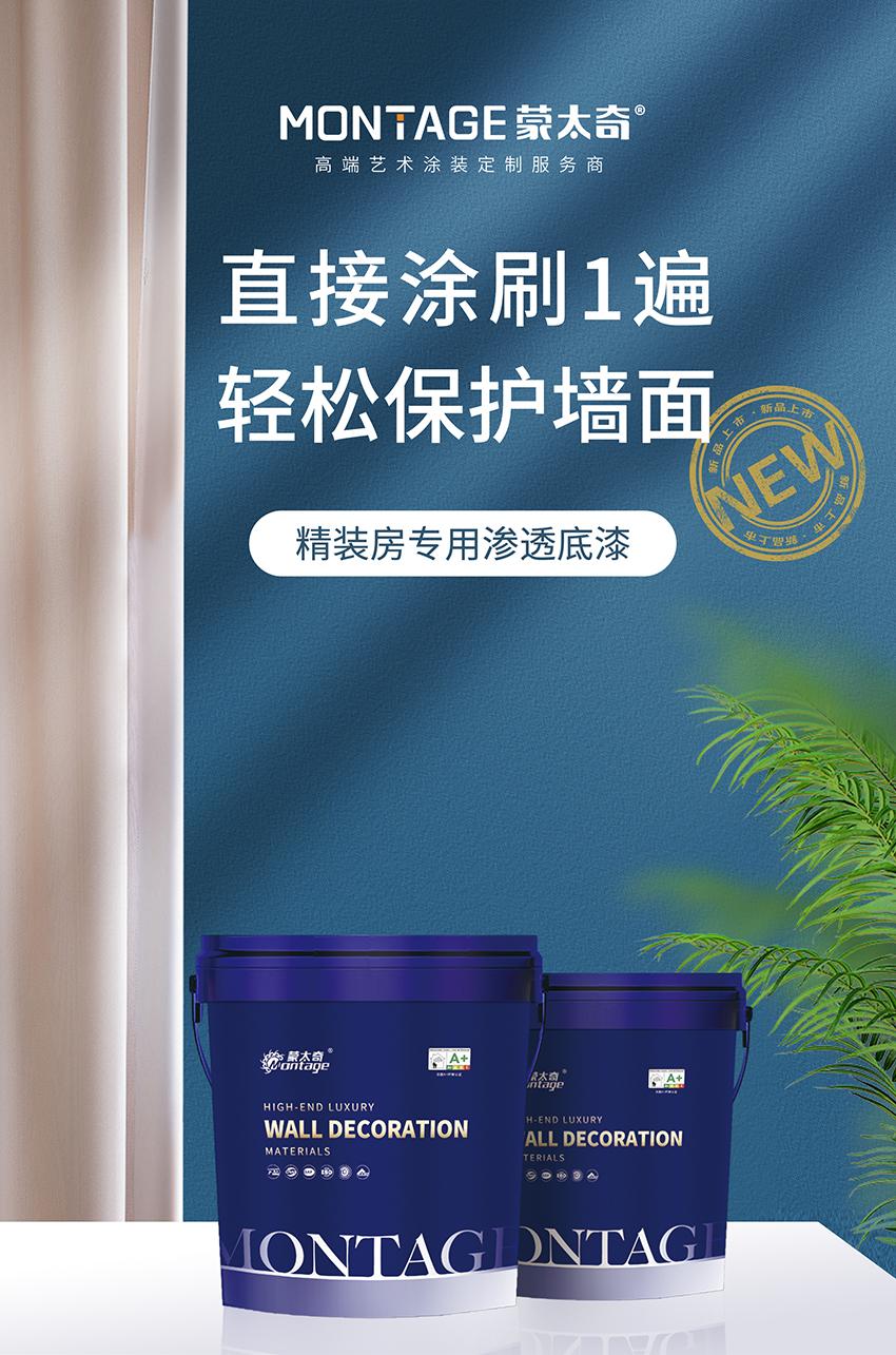 為了全方位解決精裝房或二手房客戶家裝煥新需求,針對原有乳膠漆墻面常見的起皮、裂紋、返堿等問題隱患,蒙太奇推出新品——精裝房滲透底漆。