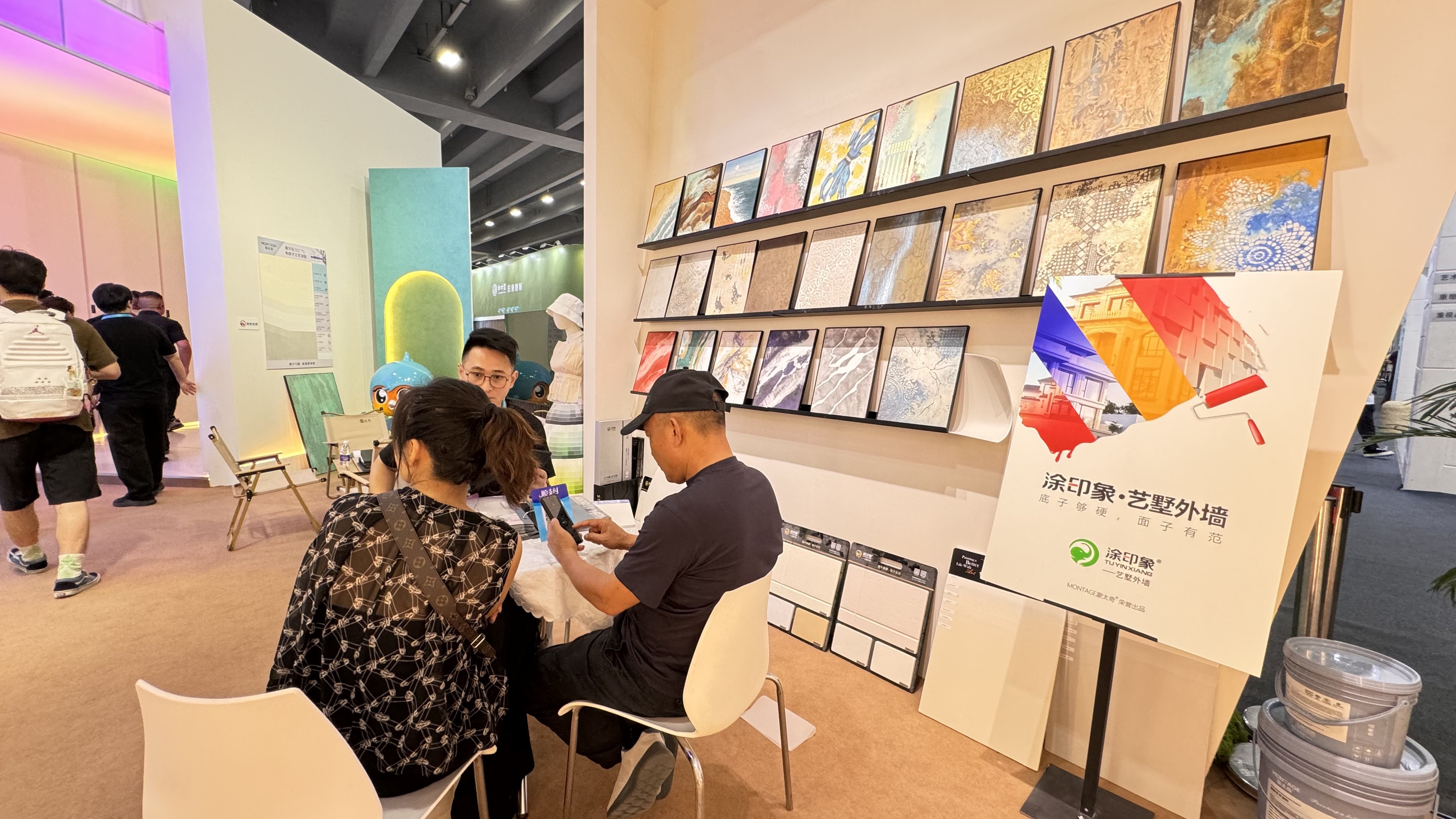除了新品,本次展會(huì)上,蒙太奇還重磅推出"煥家妝"煥新涂裝與"涂印象"藝墅外墻兩大品牌。為助力合作伙伴發(fā)展,蒙太奇針對(duì)專賣渠道加盟、"煥家妝"煥新涂裝代理及涂印象·藝墅外墻銷售等需求,制定了一系列令人心動(dòng)的合作政策與全方位賦能體系。活動(dòng)期間,兩大新品牌體驗(yàn)區(qū)與咨詢區(qū)人頭攢動(dòng),吸引了大批專業(yè)觀眾駐足體驗(yàn)、洽談合作,現(xiàn)場(chǎng)咨詢量持續(xù)攀升,成為展館內(nèi)備受矚目的焦點(diǎn)區(qū)域。