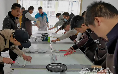 技術訓練營培訓專業施工人才,擁有技師人數眾多,技術精湛的施工團隊,累計培訓超過30.0+名專業優秀的藝術涂料墻藝師,為市場輸出大批量的專業施工人員和就業機會,為經銷商提高了盈利空間,降低了高額培訓的費用,促進涂裝標準等系列問題,讓每面墻和每道工藝都能成為獨特的風景線。